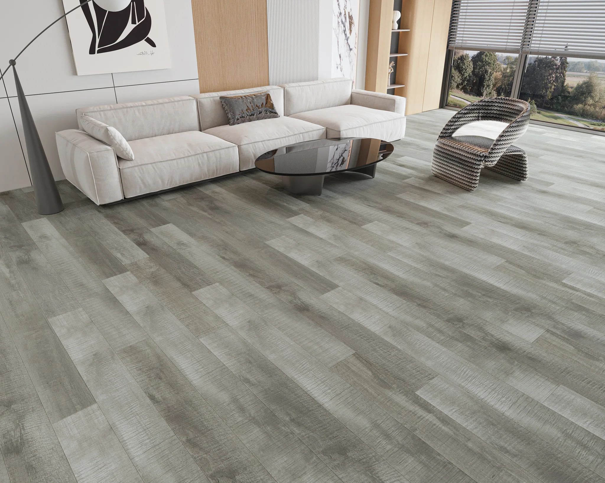 Ashford delivers a sleek, industrial look with its cool, mid-tone grays and subtle variations that mimic weathered concrete and brushed steel. The distressed finish and directional grain add depth and visual texture, making it a standout choice for modern, urban, or loft-style interiors.